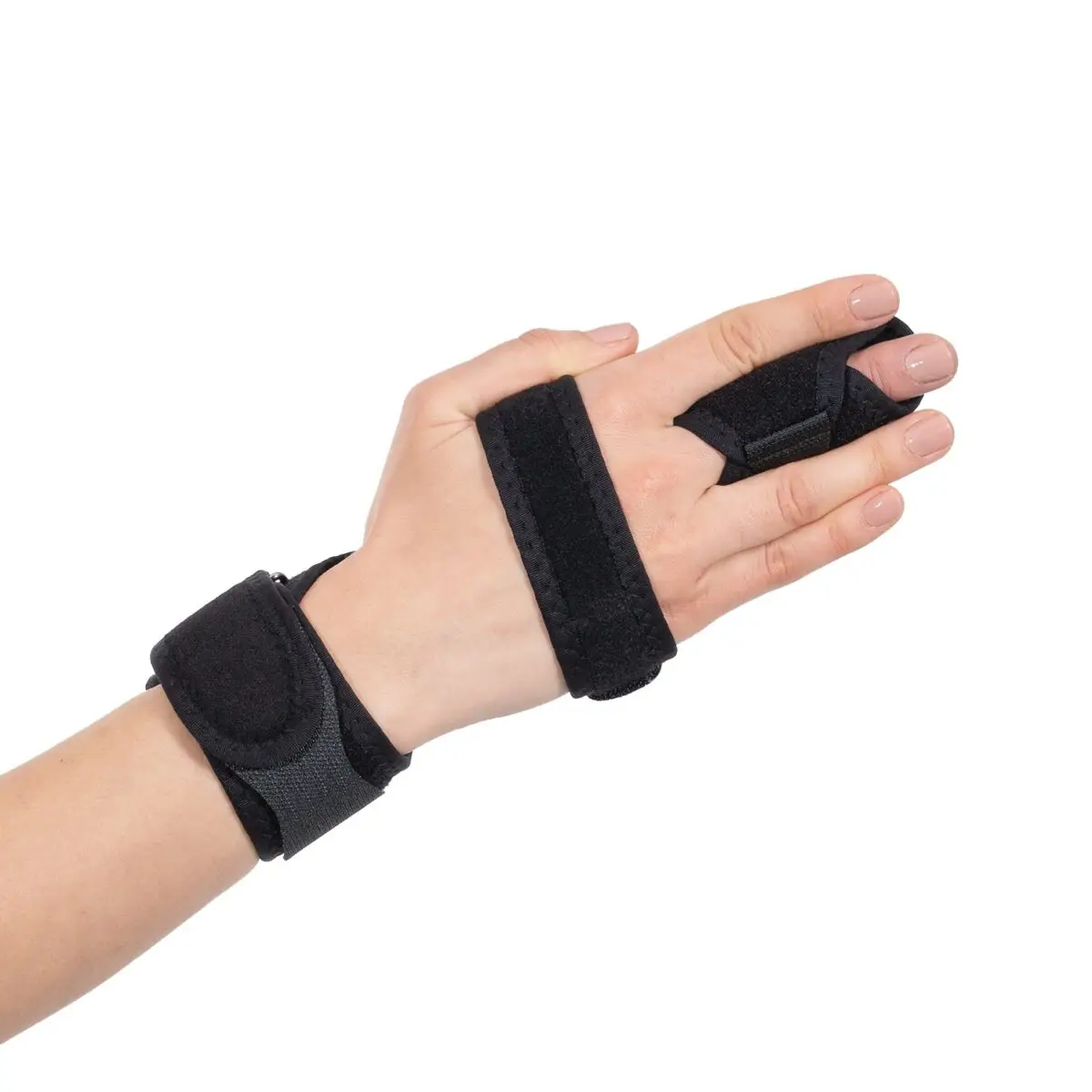 Cette attelle assure une stabilisation au poignet et au majeur. Elle peut être ajusté à l’étanchéité souhaitée avec des bandes velcro dessus. Est constituée d’un aluminium à l’intérieur pour une stabilisation et une immobilisation maximales.