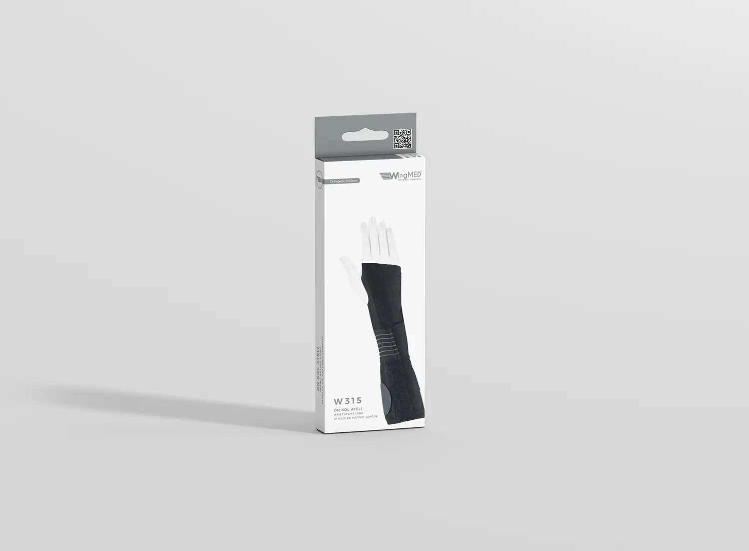 C’est une attelle longue qui permet d’immobiliser le poignet en position neutre. Est fabriquée pour la partie de l’avant-bras et saisir le poignet. Contient un aluminium sous l’avant bras. Il est possible d’utiliser les deux mains en changeant le support en aluminium.