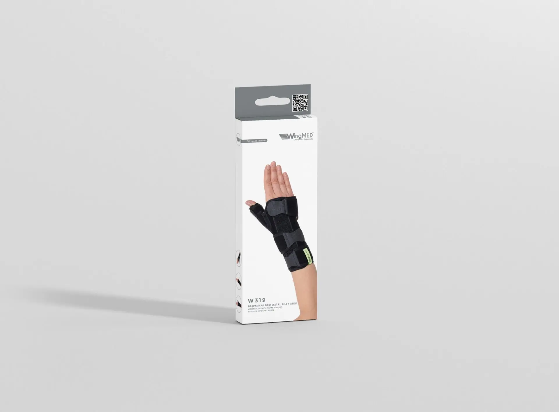 Cette attelle contient un support en aluminium au dessous du poignet et à côté du pouce. Peut etre utiliser dans les 2 mains en changeant de place le support en aluminium situé sous le poignet. Possède une bande de velcro autour du poignet qui augmente la stabilisation.