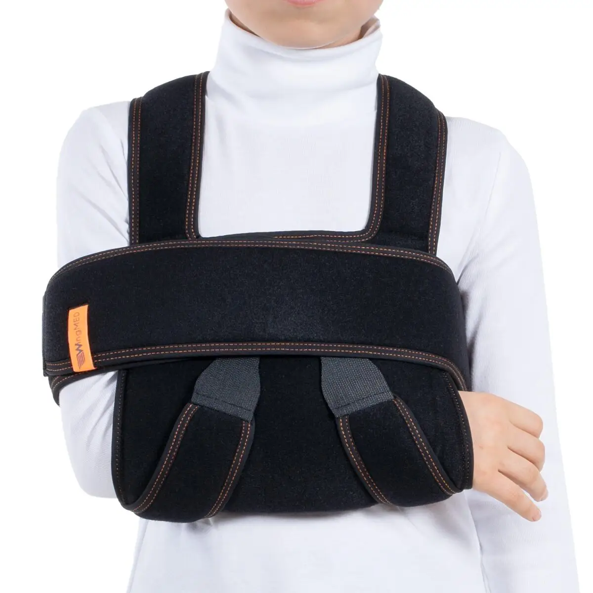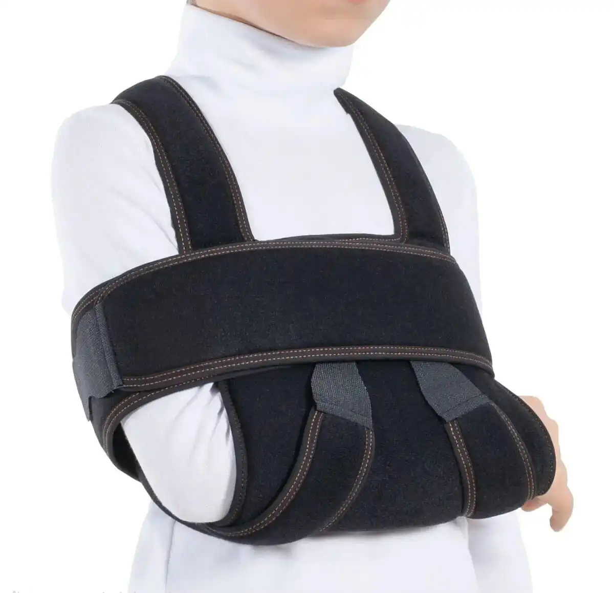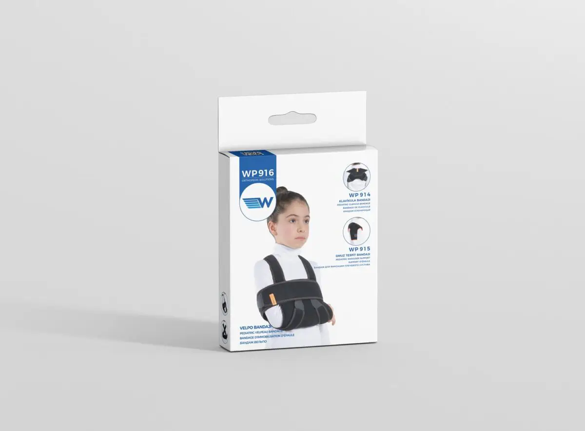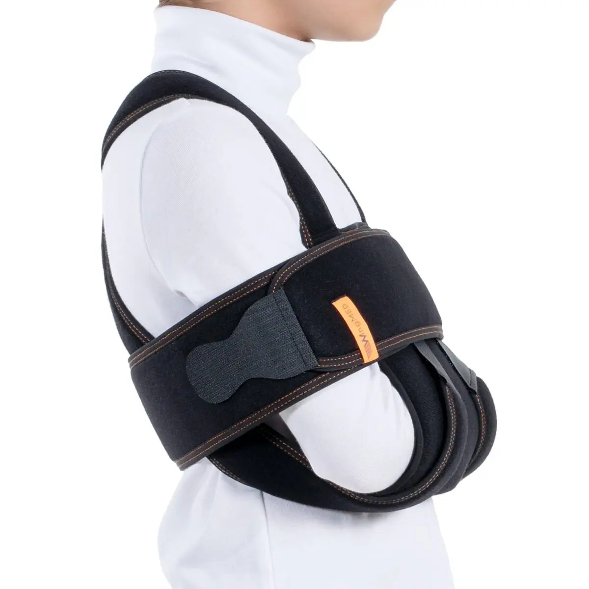 Il est fait de tissu éponge. Il assure l’immobilisation de l’épaule et du haut du bras en cas d’abduction. Un bandage enroulé autour de la poitrine améliore la fixation. Le velcro sur le devant offre une facilité d’utilisation.
