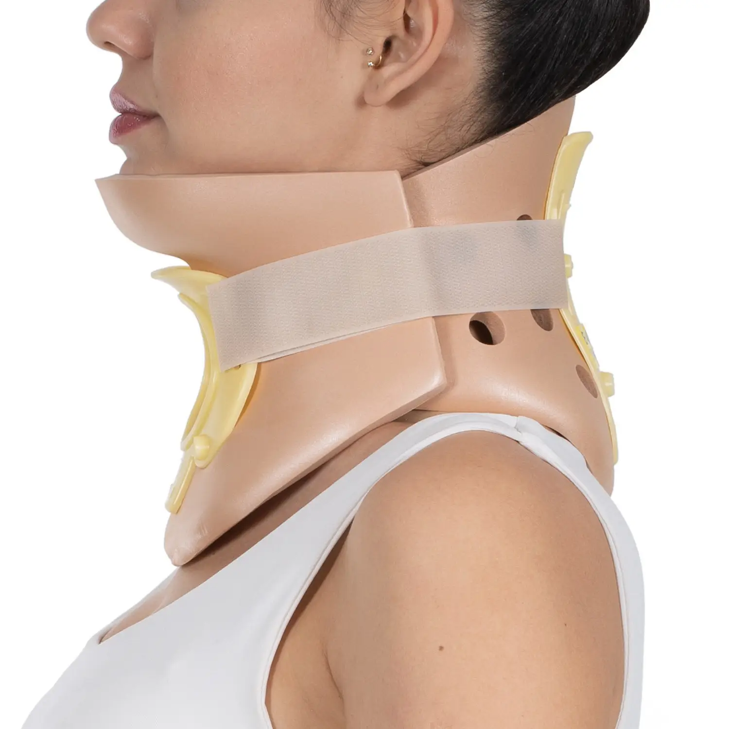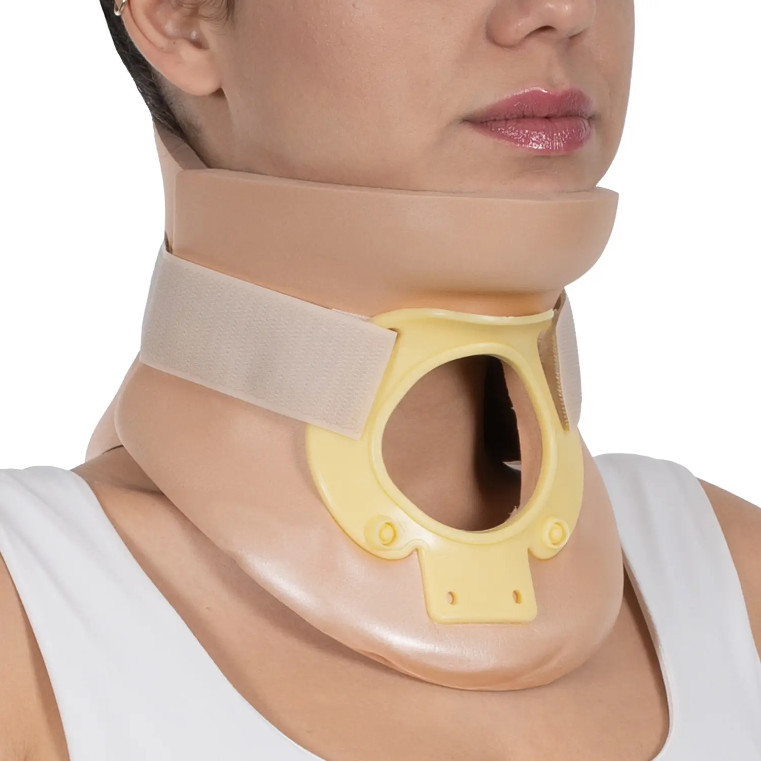 Composé de 2 parties il aide le patient pendant le traitement en limitant les mouvements de flexion, latéraux et rotationnels du cou avec le support de menton. L’ouverture de la trachée permet un accès aux trachéotomies d’urgence. Il est compatible aux rayons X et IRM.