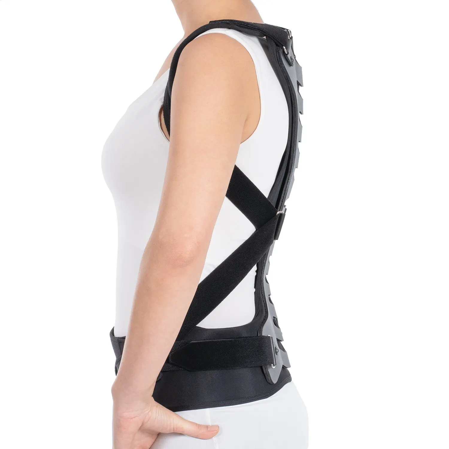 Il s’agit d’une orthèse en aluminium de 3 millimètres avec support en mousse à l’intérieur. La surface intérieure est faite d’un tissu éponge. Il s’agit d’une orthèse qui peut être utilisé dans les fractures des corps vertébraux. Elle peut également être utilisé pour redresser le dos. Grâce aux bretelles et à la ceinture nouée à la taille, elle stabilise correctement le patient.